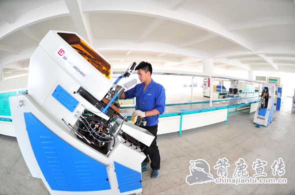 為做大集團(tuán)產(chǎn)業(yè)鏈,年初集團(tuán)經(jīng)過(guò)廣泛調(diào)研,決定上馬年產(chǎn)100萬(wàn)雙皮鞋生產(chǎn)線(xiàn)。目前皮鞋廠一期設(shè)備安裝工作已近尾聲,預(yù)計(jì)5月份可投產(chǎn)。二期生產(chǎn)廠房擴(kuò)建正在緊張進(jìn)行。圖為工人在調(diào)試皮鞋設(shè)備。