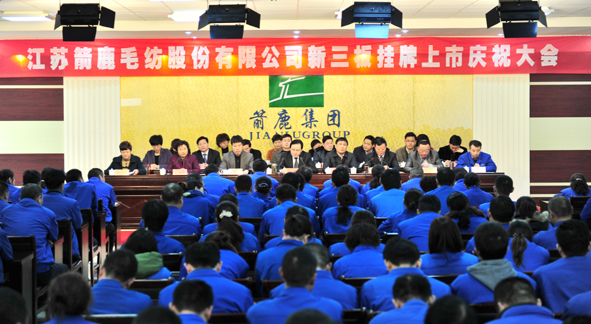 李健指出,在目前經(jīng)濟(jì)形勢(shì)不景氣的情況下,箭鹿通過(guò)努力成功上市難能可貴。在宿城區(qū)我參加過(guò)2家企業(yè)上市,一家是洋河集團(tuán),一家就是箭鹿,洋河是釀酒行業(yè),箭鹿是傳統(tǒng)紡織行業(yè),從某種意義上來(lái)說(shuō),比洋河上市更加不易,這次在新三板掛牌,宿遷市也僅此一家。