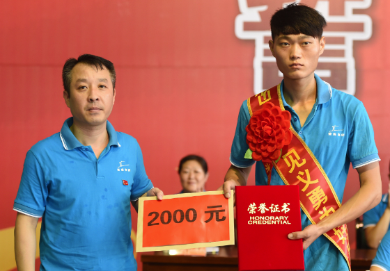 會(huì)上,董事長(zhǎng)、總經(jīng)理劉偉對(duì)見義勇為好員工閆懷康頒發(fā)證書和獎(jiǎng)金,集團(tuán)黨委號(hào)召全體員工開展向見義勇為好員工閆懷康進(jìn)行學(xué)習(xí)。